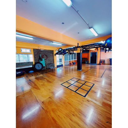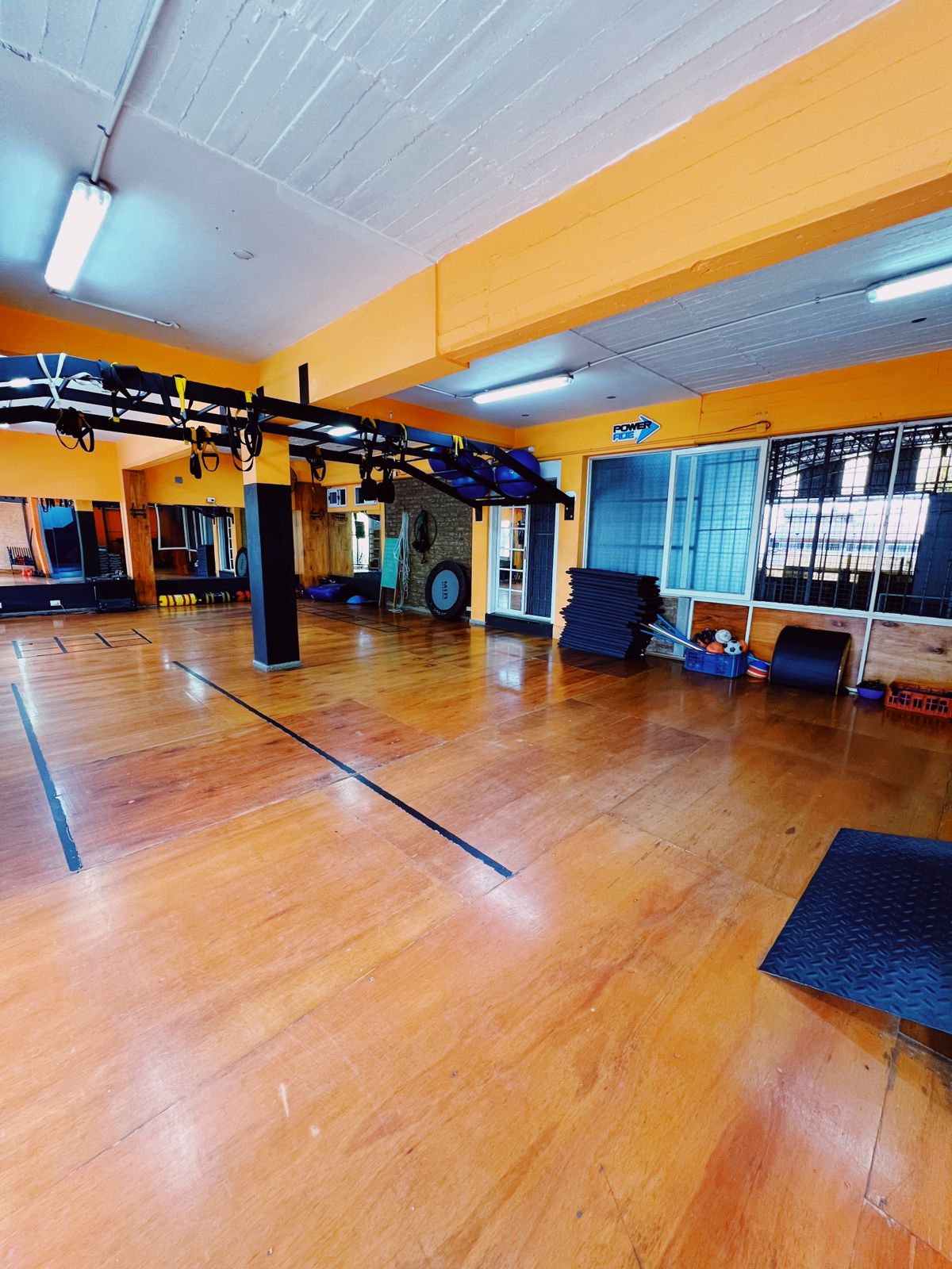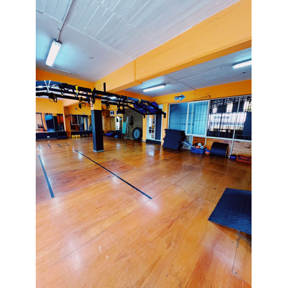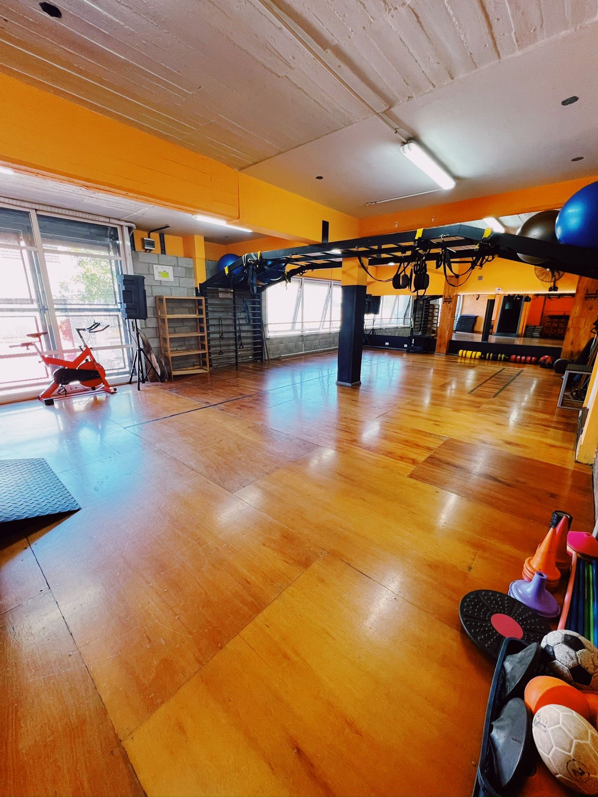 Salón de clases ideal para realizar todo tipo de actividades. Con estructura de pasamos para entrenamiento funcional o crossfit + equipamiento de materiales para diversas disciplinas.