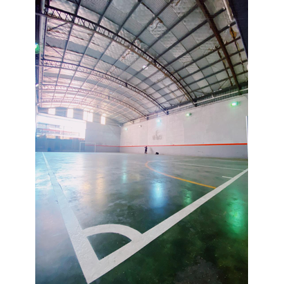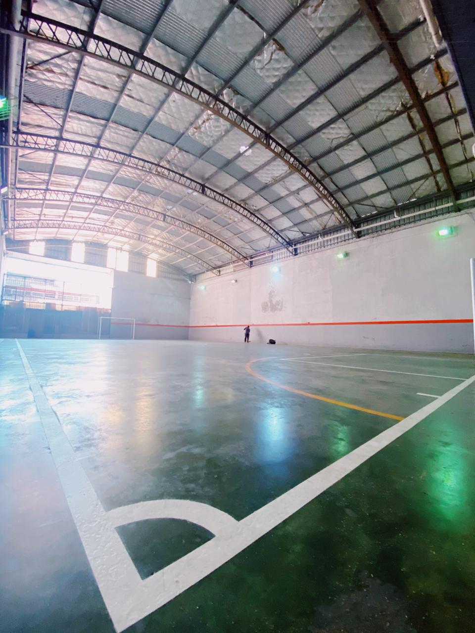 Cancha de Fútbol 5 de 28x17mts con iluminación de 10 reflectores para horarios nocturnos.
